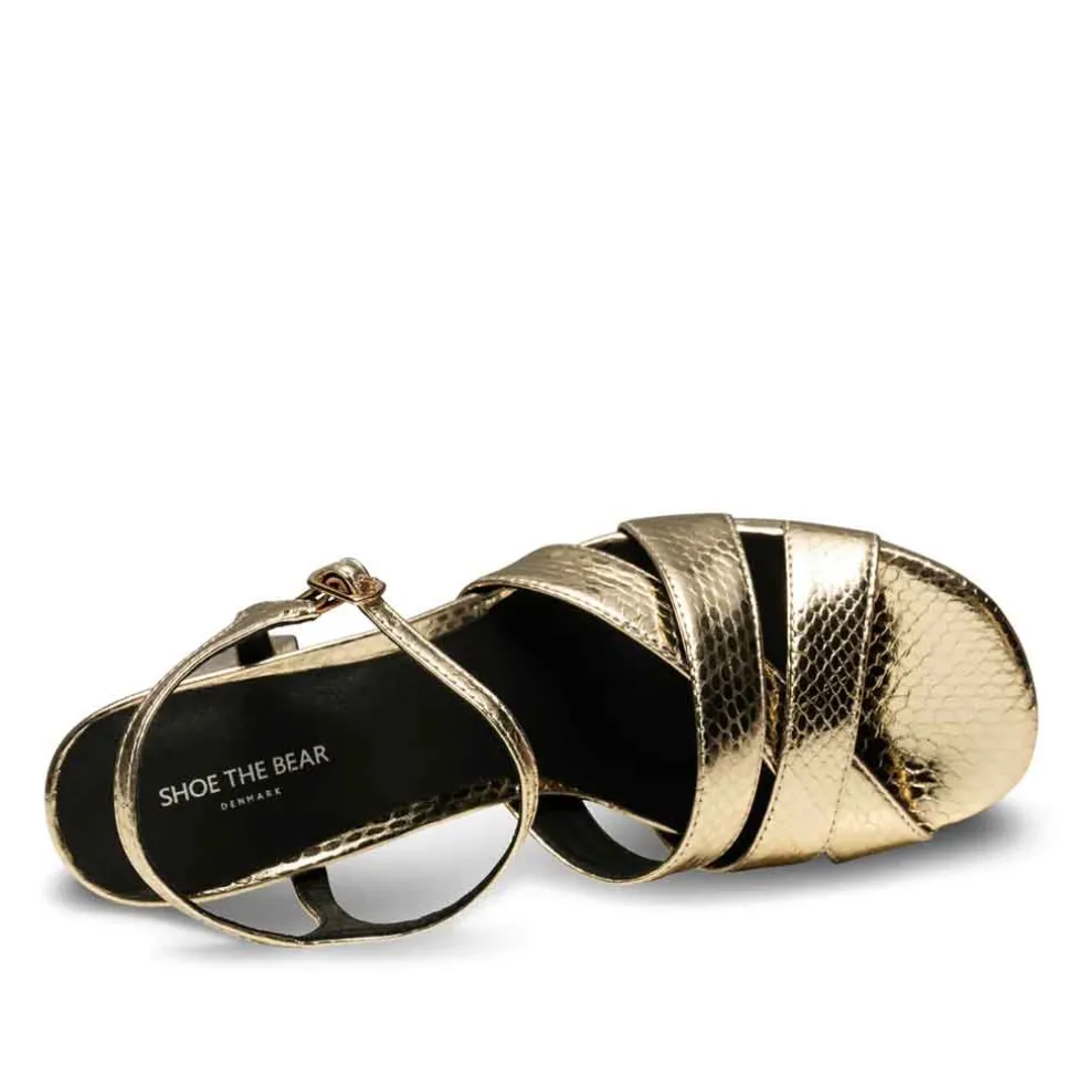 Strappy with some height, the Nova shines with gold leather uppers. A platform sole takes you to towering heights without sacrificing comfort. Careful, you may go supernova while stunning in this heel! 3.75″ heel with a 1.2″ platform.