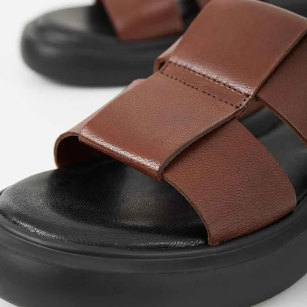 Blenda is an easy everyday slip-on sandal with an elevated look. An interlaced brown leather upper and a 1.5” rounded platform dress up the style enough for dinners out, while a cushioned footbed keeps things comfy.