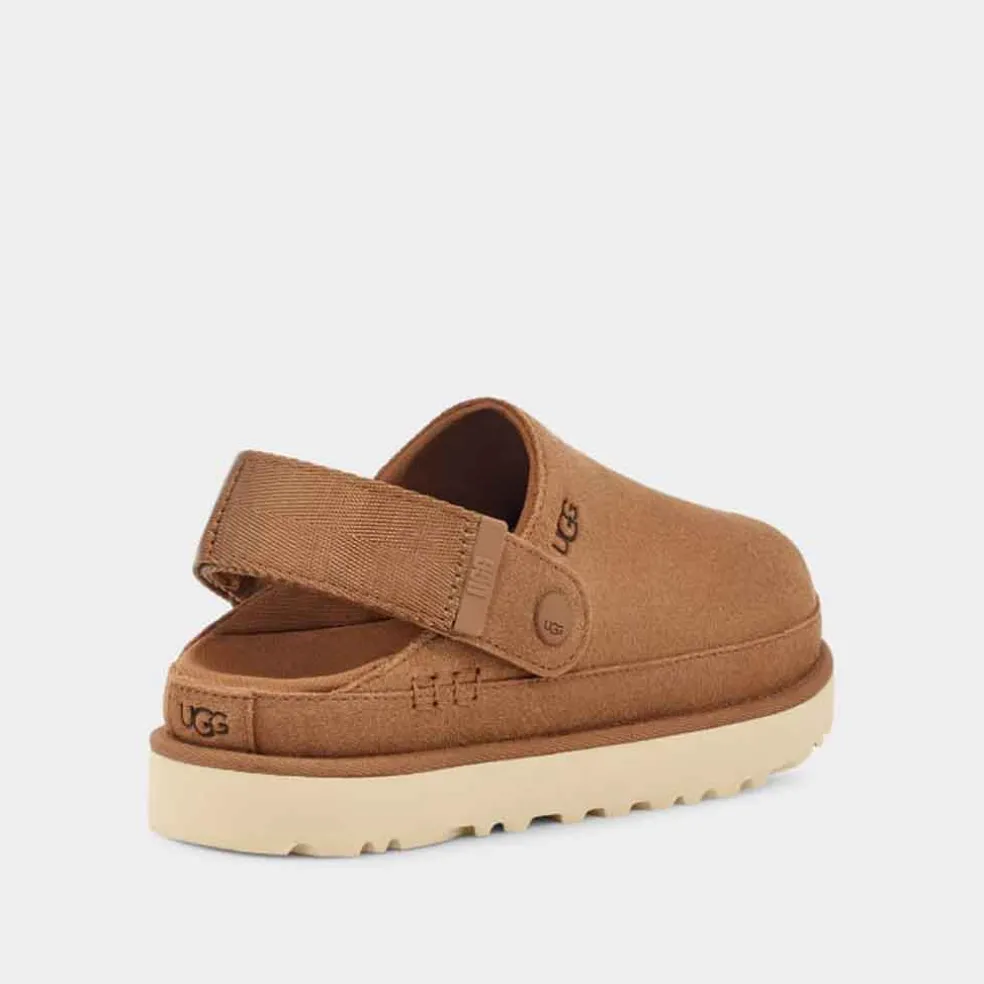 The Goldenstar is a new style from Ugg that features a handy convertible heel strap – wear as a backstrap or stack on top for a true clog. This shoe has a plush insole and ultra-light outsole. A new classic.